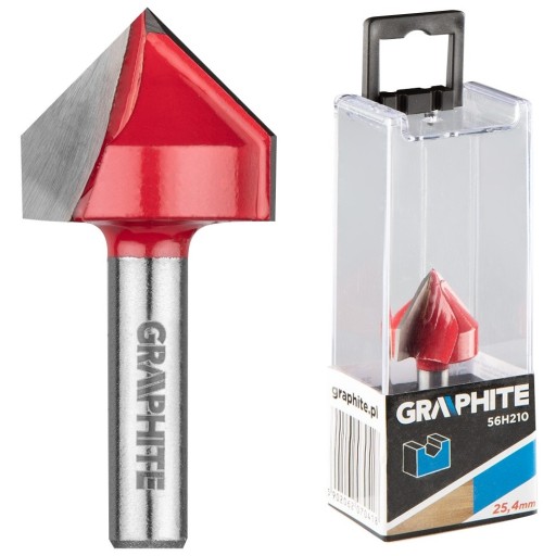 Frez do rowków typu V, HM, 25.4 x 25.4 mm, trzpień 8 mm GRAPHITE (nr ref. 56H210) przeznaczony do precyzyjnej obróbki m.in. drewna, PCV, płyt wiórowych przy pomocy frezarek górnowrzecionowych.