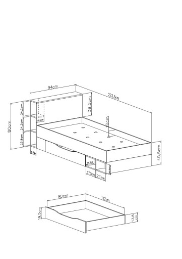 - w łóżku MO18 na dole szuflada na pościel, istnieje możliwość montażu wezgłowia i pojemnika lewo/prawo