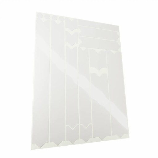 Zastosowana technika nacinania perforacji (nacinania podkładu) poszczególnych elementów na arkuszach, umożliwia przymierzenie elementu na ramie roweru przed przyklejeniem - nie trzeba odklejać folii od papieru. Gwarantuje to idealne dopasowanie każdego elementu.