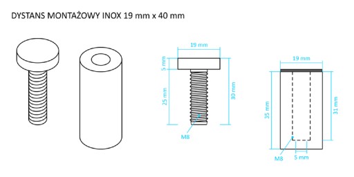 - Aukcja dotyczy dystansu toczonego ze stali nierdzewnej w wykończeniu satynowym 19x40mm