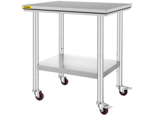 Ta stal ze stali nierdzewnej jest zamontowana na 4 kółkach kółkach, dzięki czemu tabela porusza się płynnie i utrzymywanie go stabilne. Dwa koła mają zintegrowany hamulec; Możesz zablokować go, aby utrzymać stół na miejscu.