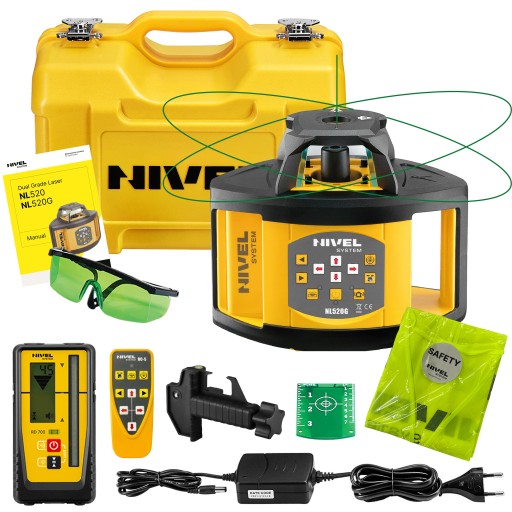 Laser obrotowy Nivel System NL520 to wszechstronne i wielofunkcyjne narzędzie. Przeznaczony jest do prac ogólnobudowlanych. Jego mocną stroną jest trwałość i odporność na warunki atmosferyczne oraz wydajne akumulatorki litowo-jonowe zapewniające kilkadziesiąt godzin ciągłej pracy w terenie. Sprzęt jest przyjazny użytkownikowi dzięki intuicyjnemu interfejsowi i możliwości zdalnej obsługi za pomocą pilota.