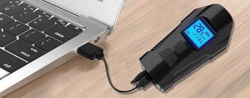 Ładowanie odbywa się poprzez dołączony do zestawu przewód USB, tak samo jak w przypadku przedniej lampki z licznikiem.