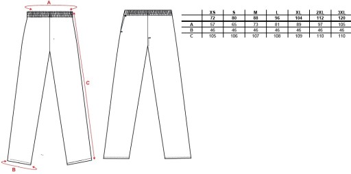 Bardzo trwała tkanina o skośnym splocie odporna na odbarwienia. W pełni elastyczne wykończenie pasa. Tkanina wykurczona co gwarantuje zachowanie rozmiaru po wielu praniach. Z kieszenią boczną.