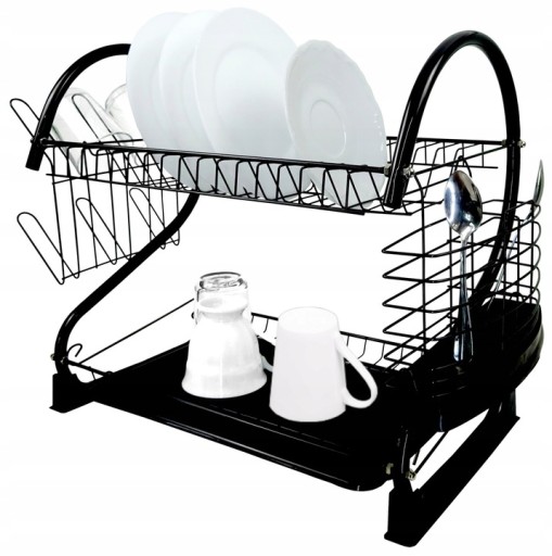 ДВУХУРОВНЕВАЯ БОЛЬШАЯ СУШИЛКА ДЛЯ ПОСУДЫ, ЧЕРНАЯ