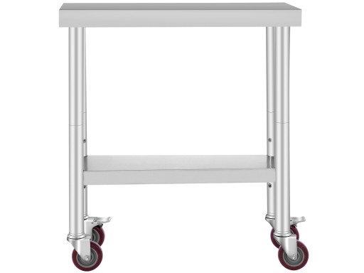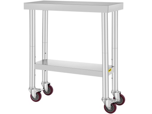 Ta stal ze stali nierdzewnej jest zamontowana na 4 kółkach kółkach, dzięki czemu tabela porusza się płynnie i utrzymywanie go stabilne. Dwa koła mają zintegrowany hamulec; Możesz zablokować go, aby utrzymać stół na miejscu.