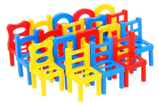 ✔ Zestaw składa się z 18 sztuk krzesełek w różnych kolorach oraz kształtach.