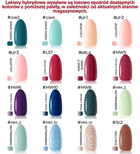 Podczas wybierania kolorów w wiadomości do sprzedającego, prosimy o dokładne podawanie numerów kolorów (bez nazw kolekcji) ,które znajduą się w lewym górnym rogu każdego koloru lakieru. To znacznie przyspieszy proces kompletacji zamówienia.