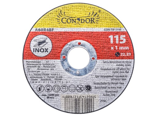 Tarcza posiada ścierniwo wiązane żywicą syntetyczną i jest wzmacniana tkaniną z włókna szklanego.