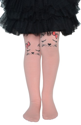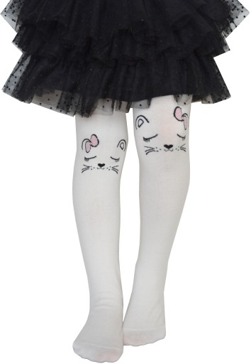 Śliczne rajstopki ozdobione na kolankach uroczymi zwierzątkami.