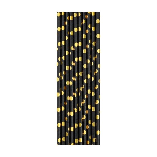 SŁOMKI PAPIEROWE CZARNO ZŁOTE 10SZT