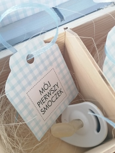 UWAGA: wyposażenie pudełka nie zawiera : smoczka, świeczki i bucika- są to rekwizyty na potrzeby sesji zdjęciowej .