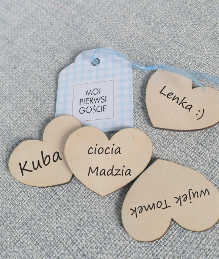 W przegródce „moi pierwsi goście” - GRATIS dołączone zostały 4 drewniane serduszka na podpisy pierwszych gości.