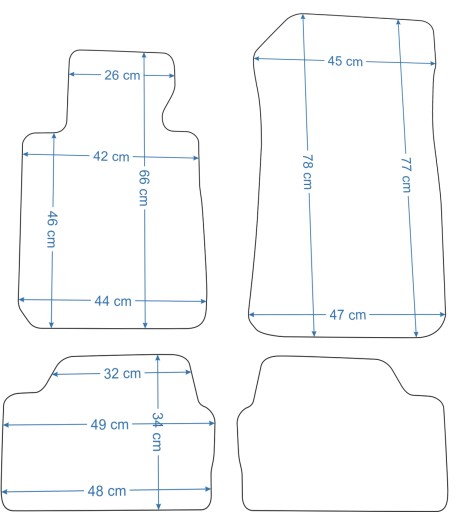 Poniżej wymiary dywaników - Dywaniki nie mają zamontowanych rzepów.