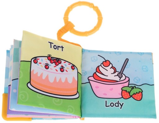Każda z kolorowych książeczek wyposażona została w gryzak, umieszczony w rogu okładki, oraz praktyczne kółeczko, ułatwiające przyczepienie książeczki w dowolnym miejscu, aby mogła towarzyszyć maluchowi w podróży czy na spacerze.