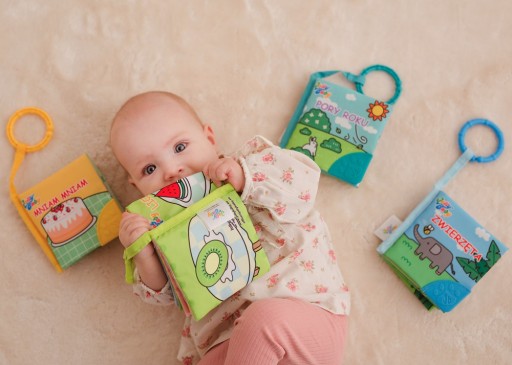 Zestaw 4 KSIĄŻECZKI SENSORYCZNE - GRYZAKI od Jolly Baby.