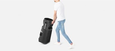 Wytrzymałe rolki pozwolą Ci zabrać zestaw MHC-V73D na każdą imprezę. Kiedy chcesz go przestawić, łapiesz za uchwyt, przechylasz i możesz wygodnie go przetransportować.