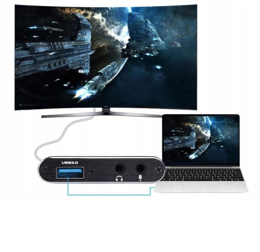 Dzięki naszemu adapterowi można przechwycić obraz z najróżniejszych urządzeń, takich jak: kamery video, kamery internetowe, tv boxy, konsole czy smartfony. Należy jednak pamiętać, że przy urządzeniach, które nie posiadają oryginalnie wejścia HDMI (np. telefon komórkowy), należy dokupić we własnym zakresie dodatkową przejściówkę, aby móc się podpiąć do portu HDMI w naszym urządzeniu. Adapter posiada wejście i wyjście HDMI do przechwytywania obrazu oraz złącze USB 3.0 do transferu w największej prędkości. Dodatkowe niezależne wejście i wyjście audio gwarantuje możliwość oddzielnego przechwycenia dźwięku i przekierowania go na zewnętrzne urządzenia. Całość nie wymaga dodatkowego zasilania