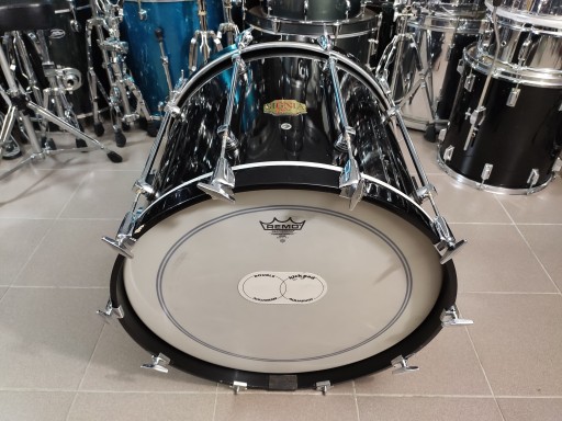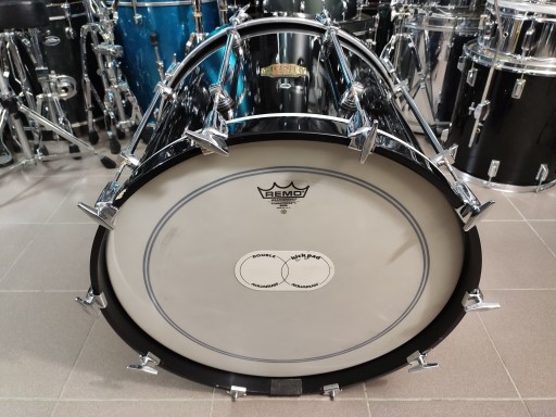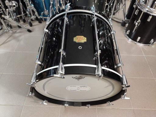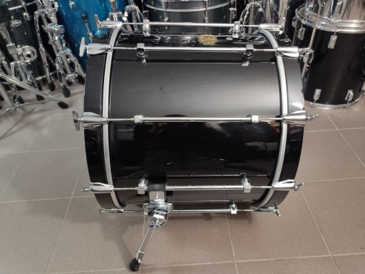 Bęben jest w dobrym stanie, nie posiada żadnych uszkodzeń i jest w pełni sprawny. Posiada ślady normalnego użytkowania. Na niektórych lugach ślady korozji. Naciągi są w bardzo dobrym stanie. Korpus wykonany z klonu. Kolor piano black.