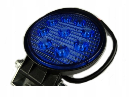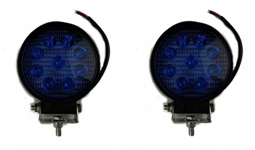 Lampa robocza LED niebieska 27W (9x3W) okrągła. Światło rozproszone. Zestaw 2 sztuk.