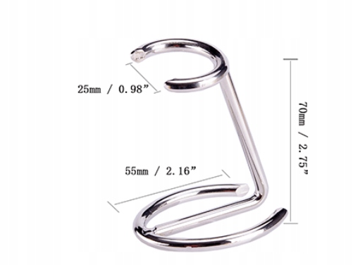 Chromowany stojak na pędzel do golenia, który pasuje do większości pędzli o standardowych wymiarach knota mieszczących się w zakresie szerokości od 21 do 24 mm u podstawy.