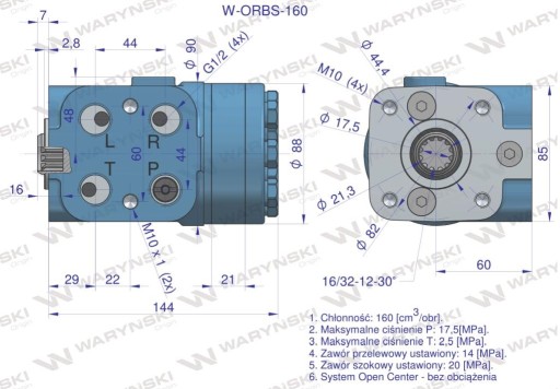 Orbitrol hydrauliczny W-ORBS 160 cm3/obr z zaworami (System Open Center - bez obciążenia) WARYŃSKI