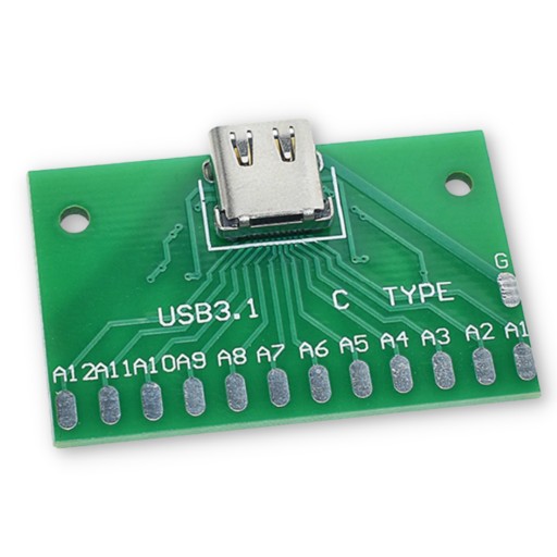 Standard USB 3.1 z gniazdem typu C. Umożliwia on przesył danych do 10 Gbps. Adapter posiada na płytce montażowej PCB wprowadzone pady do lutowania.