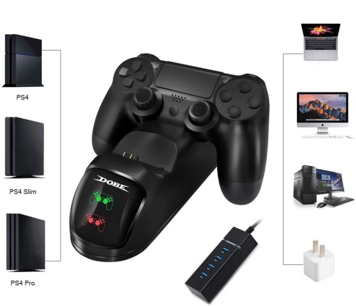 DOBE TP4-889 to wysokiej jakości doskonała podwójna stacja dokująca, ładowarka do kontrolerów PS4 Charging Dock.
