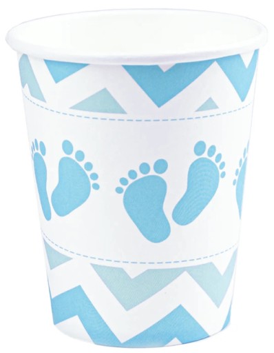 Kubeczki papierowe biało-niebieskie z nadrukowanymi stópkami - 6 sztuk