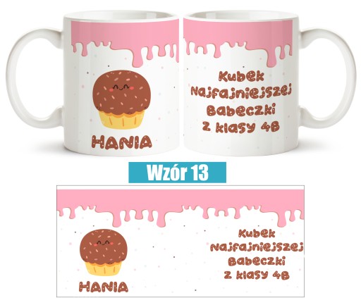 Po dokonaniu zakupu w rubryce "Uwagi do zakupu" w Formularzu Opcji Dostawy napisz numer wybranego wzoru kubka. W zależności od wybranego projektu dopisz imię/klasę/podpis jaki ma zostać umieszczony na kubku.