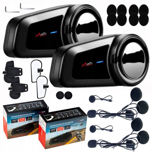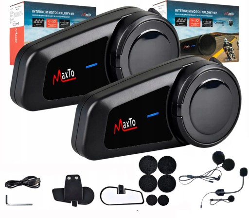 Interkom Motocyklowy MaxTo M2 z Hybrydowym i Integralnym zestawem słuchawkowym !!!