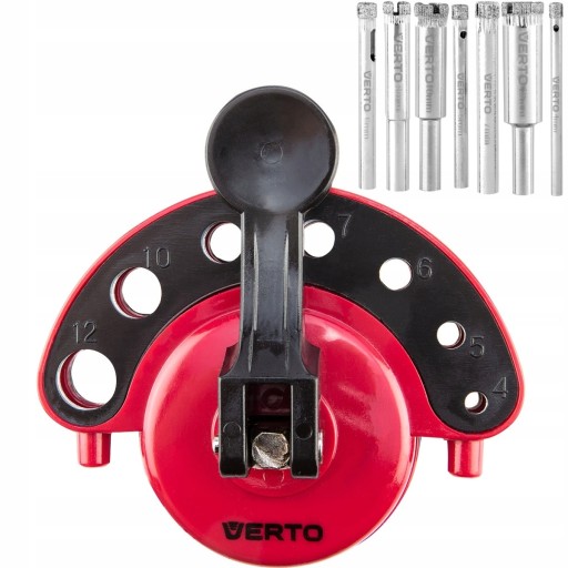 - Zestaw zawiera: Prowadnica do wiercenia z przyssawką, 7 otworów: 4, 5, 6, 7, 8, 10, 12 mm