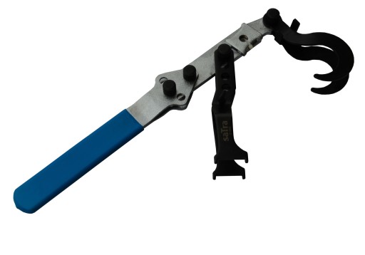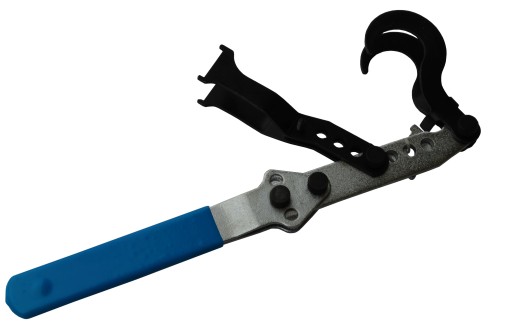 Ściągacz ma nastawne szczęki i rękojeść dla ułatwienia manipulacji w ciasnych miejscach.