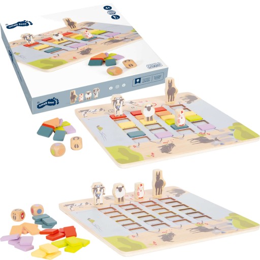 Pomóż zwierzątku przejść na drugą stronę rzeki i zrób to jako pierwszy! Zadaniem graczy jest rzucenie kostką i ułożenie na planszy wylosowanego koloru. Nie można przeskakiwać okienek, a powtórka koloru umożliwia ponowny rzut kostką!