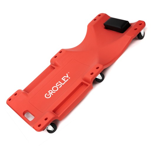 Leżanka warsztatowa wykonana z twardego tworzywa sztucznego.