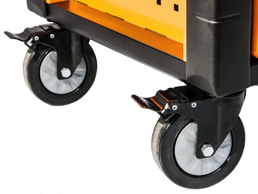 - mechanizm umożliwiający jednoczesne otwarcie JEDNEJ szuflady chroni wózek przed niekorzystnym rozłożeniem środka ciężkości, co mogłoby mieć miejsce przy otworzeniu wielu / wszystkich szuflad jednocześnie