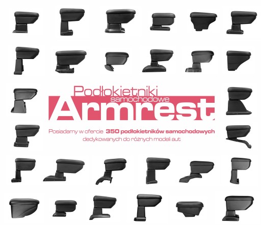 Podłokietnik model Armrest wykonany jest z czarnego perforowanego tworzywa ABS, posiada oparcie obszyte czarną wytrzymałą na ścieranie skórą syntetyczną oraz praktyczny otwierany schowek, wykończony czarnym, miękkim flokiem. Podłokietniki (w zależności od modelu auta) występują z adapterem montażowym 1 lub 2 elementowym, który można odchylić do pionu, podłokietniki z adapterem bazowym nie można podnieść (więcej poniżej w specyfikacji).