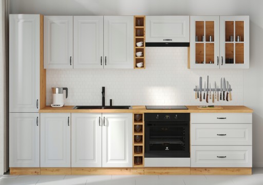 - - kolor frontów szafek dolnych: biały mat (MDF, PCV),