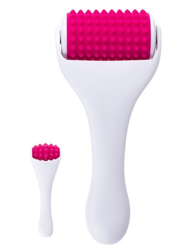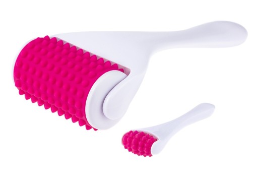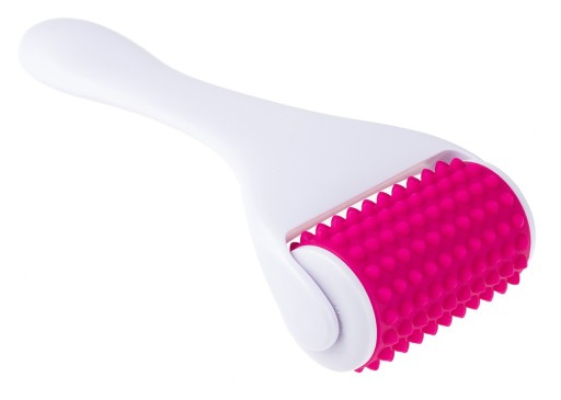 Masażer typu roller stosowany do masażu dużych obszarów twarzy, a także ciała. Rolka wykonana została z różowego, medycznego silikonu, który jest delikatny dla skóry. Rolka dodatkowo posiada wypustki, które delikatnie ugniatają skórę i wzmacniają efekt masażu.
