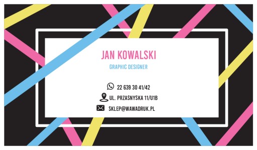 Poniżej w "dodatkowych informacjach" możesz ściągnąć szablon wizytówki, według którego zalecamy przygotowanie pliku do druku, lub na którym możesz bezpośrednio pracować.