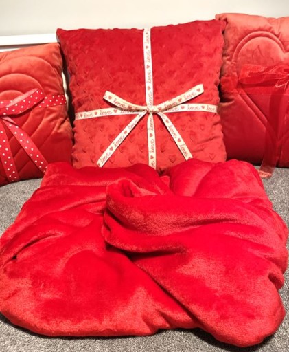 Zestaw przygotowany dla osób, które potrzebują gotowego do wręczenia prezentu. Kocyk i poduszka owinięte są gustowną wstążką, a w gratisie dodajemy Czekoladki i Balonik w kształcie serca.