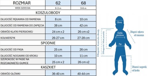 ROZMIAR UBRANEK Z TABELI PROPONUJEMY PORÓWNAĆ Z AKTUALNIE PASUJĄCYMI UBRANKAMI