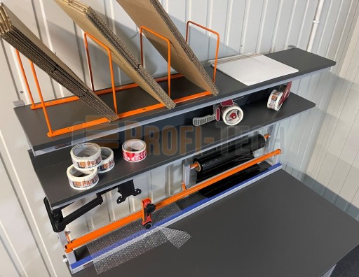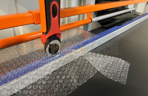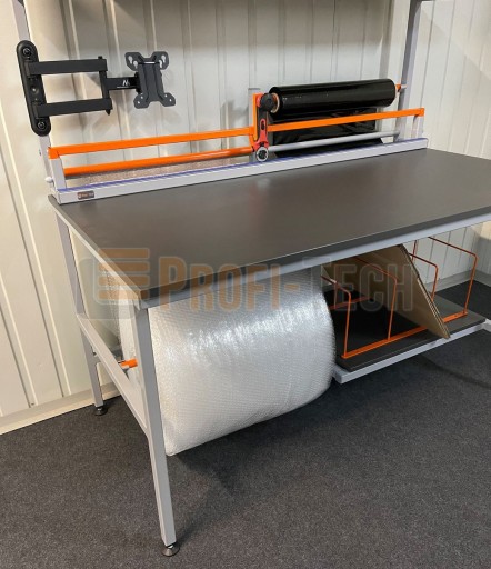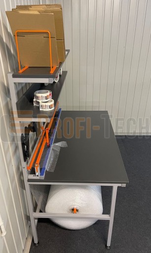 - z lewej strony stołu oś na folię bąbelkową pod blatem oraz spowalniacz folii na blacie,