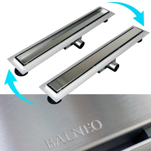 Dwustronny odpływ liniowy DUPLEX NEXT 70 cm firmy Balneo przeznaczony jest do zabudowy przy użyciu płytek ceramicznych lub marmuru. Doskonale komponuje się z podłogą w kabinie prysznicowej, tworząc harmonijną całość.