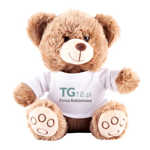 Maskotka przytulanka dla dzieci w białej koszulce, na której można wykonać znakowanie.