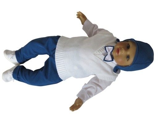 - SPODNIE NIEBIESKIE - USZYTE Z TKANINY GARNITUROWEJ ( W DELIKATNĄ KRATECZKĘ) , WYGODNE W PASIE WSZYTA GUMECZKA.