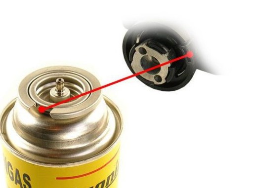 Nałóż palnik na butlę kierując zaczep na wycięcie w butli