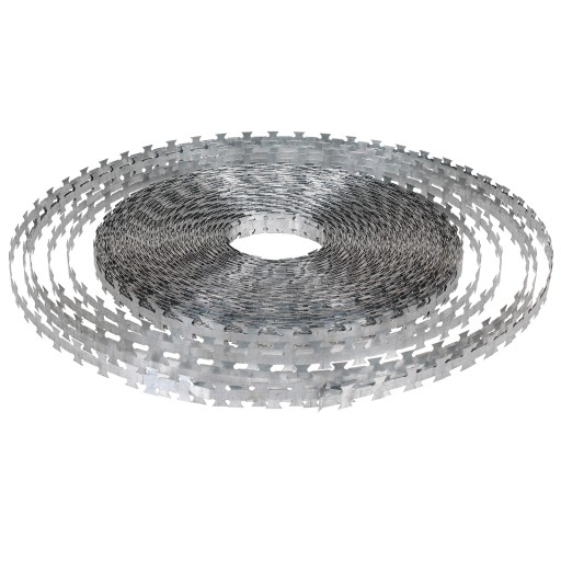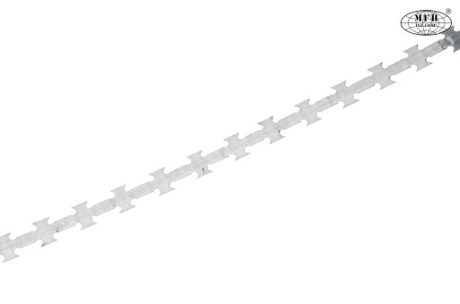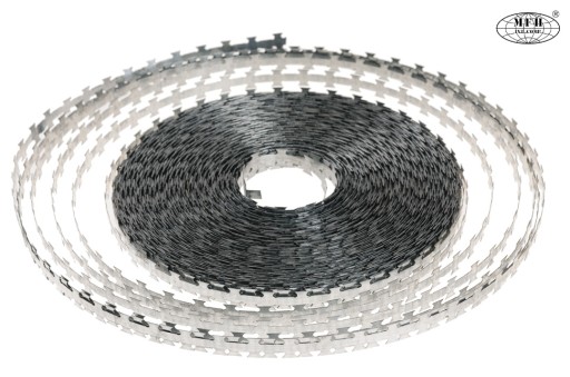Po skręceniu taśmy otrzymuje się drut do zasiek z możliwością zastosowania pojedynczej żyły na ogrodzeniu.Taśma po skręceniu jest otoczona żyletkami z każdej strony.