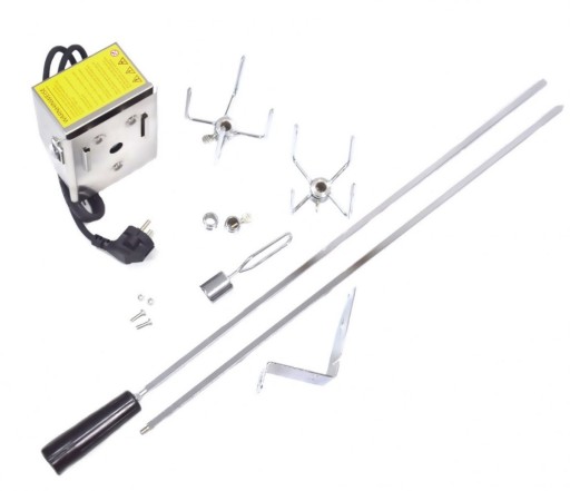 ROŻEN ELEKTRYCZNY ZE STALI NIERDZEWNEJ Napędzany silniczkiem rożen ze stali nierdzewnej do grilla. Do przyrządzania grillowanych kurczaków, gyrosów, pieczeni z rożna, itd. Do równomiernego obracania rożna grillowego jest 4-watowy silniczek elektryczny.Nasz rożen zawiera 2 igły do mięsa.DANE TECHNICZNE:Moc: 4 W (230 V / 50 Hz)Maksymalne obciążenie: 20 kgCałkowita długość: 131 cmDługość użytkowa: 120 cmWymiary: 15 x 10 x 138 cm ( Wys / Szer / Dł )Waga: 2,5 kgDługość kabla: 1 m