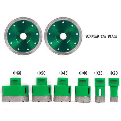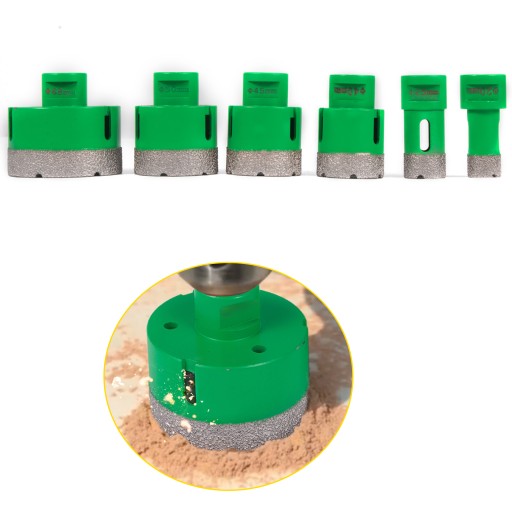 Ten zupełnie nowy profesjonalny zestaw wierteł diamentowych o średnicach 20/25/40/45/50/68 mm (0,79/1/1,6/1,77/2/2,7 cala) i gwintach M14 zapewnia szybki, prosty i czysty gwint skaleczenie. Do utrzymania czystości w miejscu pracy nie jest potrzebna woda.